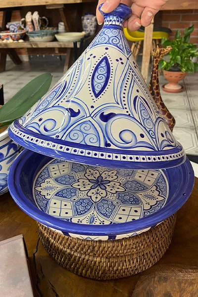 Prato Tagine Marroquino Azul – Tradição, Arte e Sabor em uma Peça Única